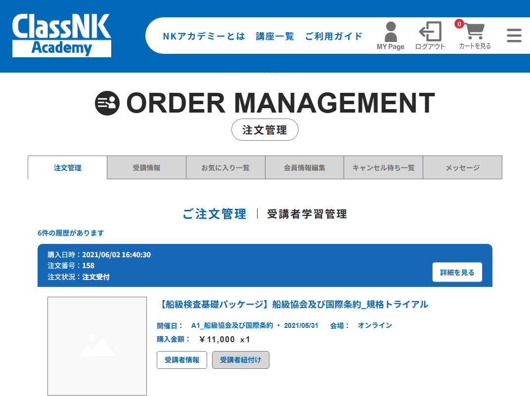 ①From the "My Courses" tab in your "My Account", click the title of the course you want to take.