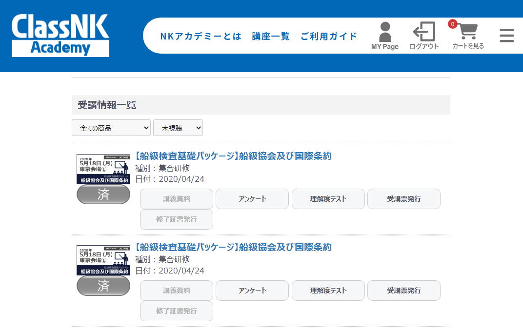 ※If the course is not devided into chapters, click the course thumbnail to start viewing. -